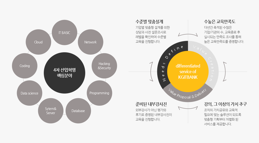 고객의 니즈에 부합하는 가치를 창조하고 제공하여 학습자의 성장과 함께 고객기업의 지속성장을 지원할 수 있는 교육서비스를 제공하는 것이 사명이자 우리 비즈니스의 핵심입니다.