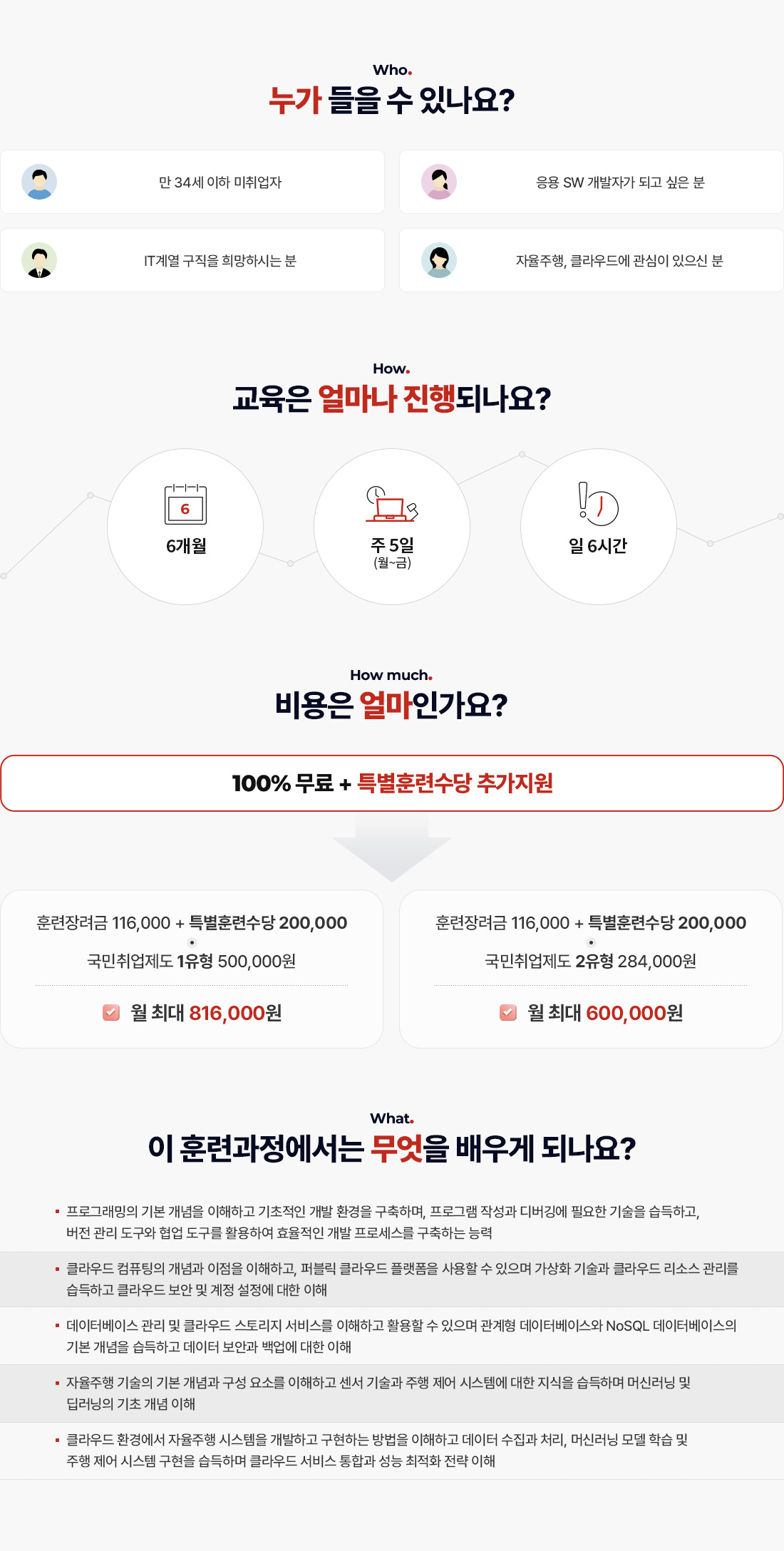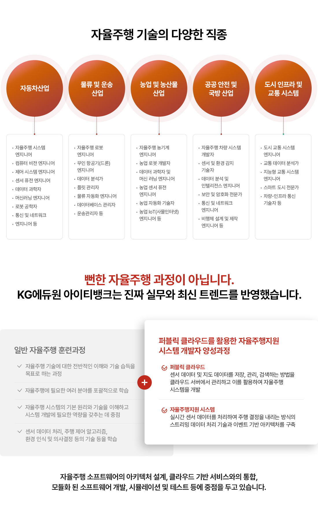 퍼블릭 클라우드를 활용한 자율주행지원 시스템에 대한 전문 지식과 기술을 학습하여 자율주행 기술 분야에서 전문적인 소프트웨어 개발자가 될 수 있습니다.